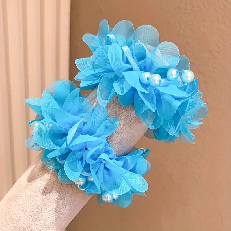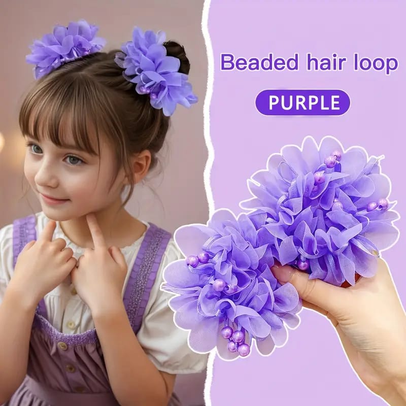 Magnifique élastique pour cheveux décoré de fleurs et de perles, spécialement conçu pour sublimer les coiffures des enfants.