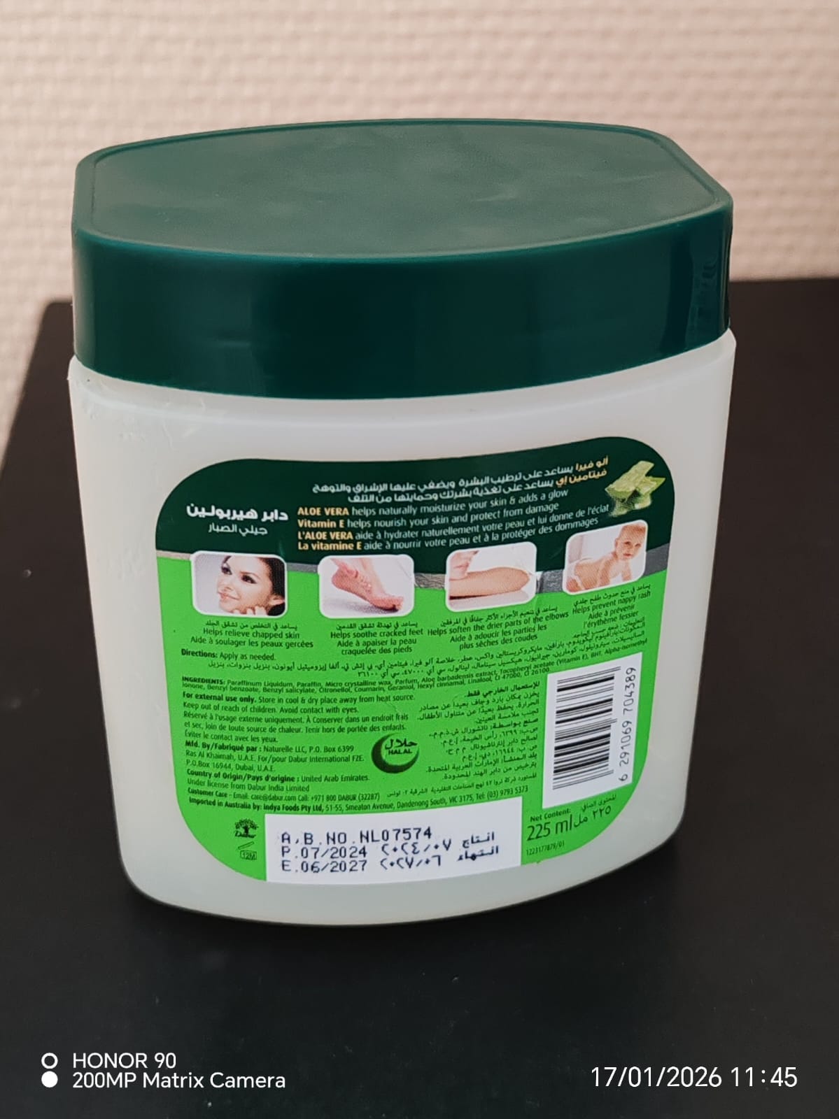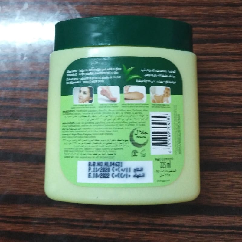 Cette vaseline enrichie en Aloe Vera et Vitamine E est spécialement formulée pour offrir une hydratation intense et une protection durable à la peau. Elle aide à adoucir, nourrir et réparer la peau sèche et abîmée, tout en lui apportant confort et souplesse.